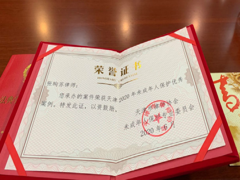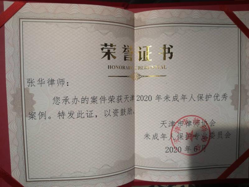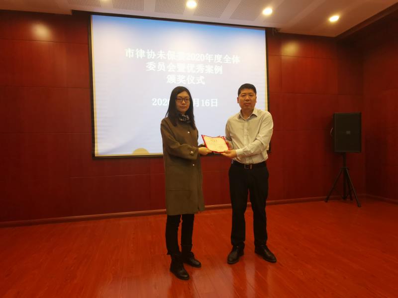 我所张华律师、张昫苏律师在我是律师队伍中脱颖而出荣膺“2020年未成年人保护优秀案例”称号。
