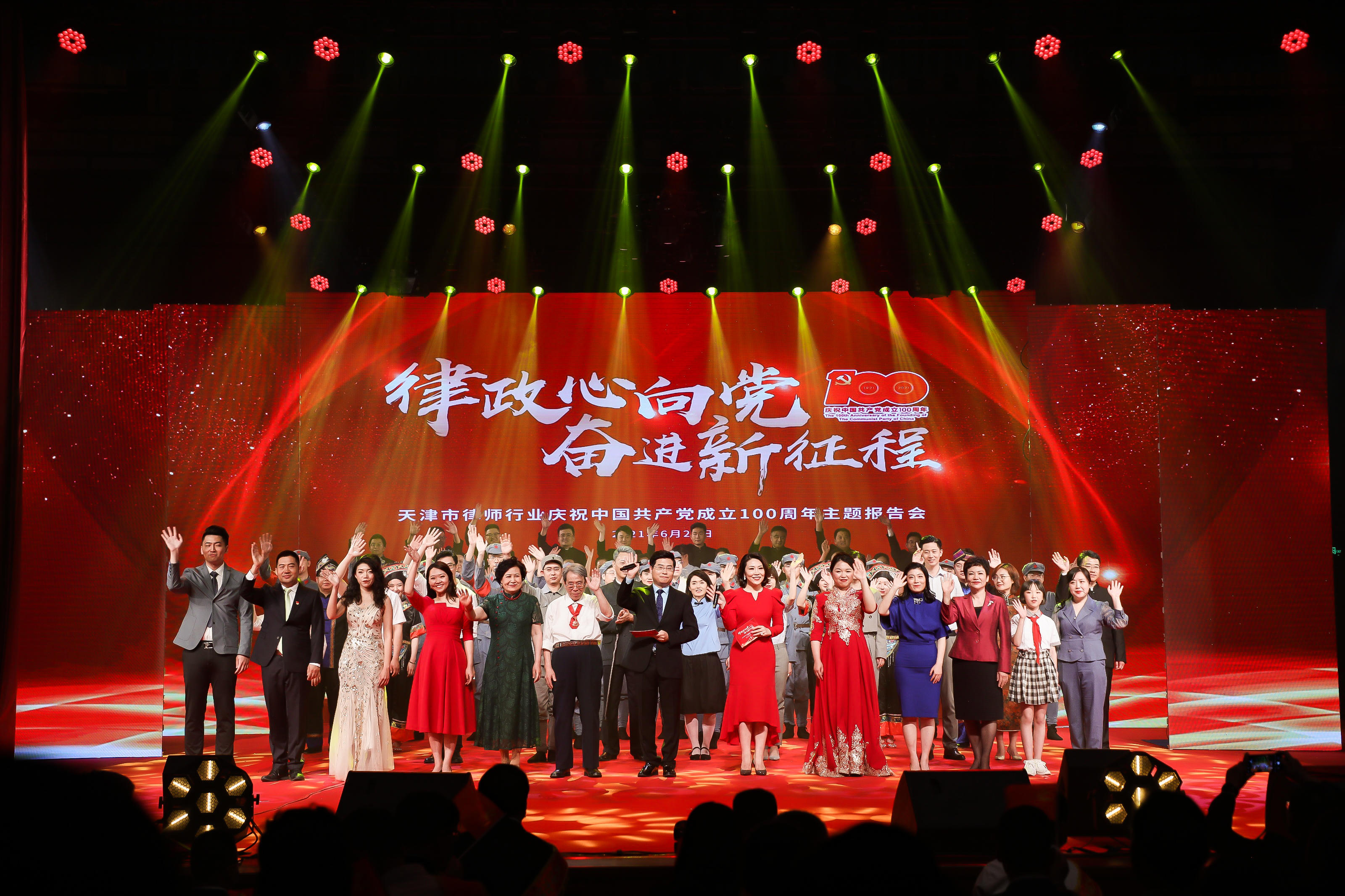 为纪念中国共产党成立100周年,讴歌党的光辉历程,天津市律师行业6月26日以“律政心向党 奋进新征程”为主题,举办了庆祝中国共产党成立100周年主题报告会,现场灯光璀璨,热闹非凡。