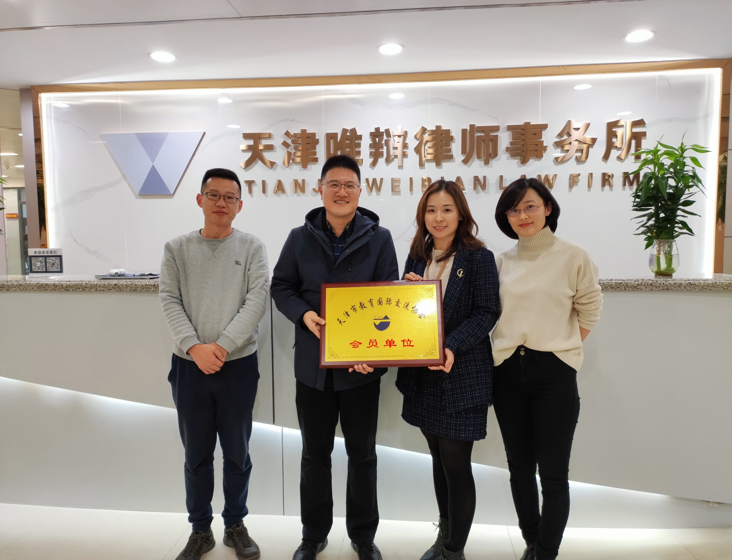 2021年12月2日,天津市教育国际交流协会副会长兼秘书长胡少培、副秘书长郭自强对天津唯辩律师事务所进行访问,与天津唯辩律师事务所签订战略合作协议,并授予天津唯辩律师事务所会员单位称号。天津唯辩律师事务所高级合伙人柴冬环律师等负责人出席,双方就签订合作协议后的目标方向展开深度交流。