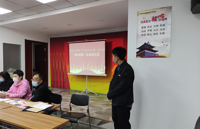 普法宣法零距离,服务群众暖民心。3月26日上午,南开区司法局开展“我为群众办实事”实践活动。我所温家轩律师、张明阳律师前往耀远里社区,为社区居民及社区工作人员宣讲《民法典》新规。