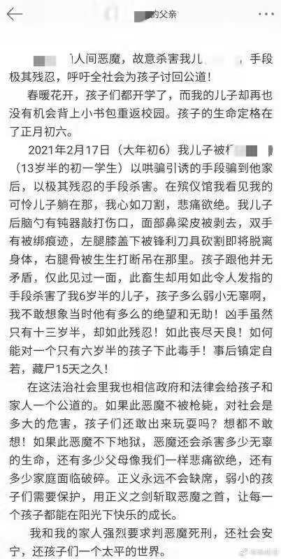 事件发生后,被害人王某的父亲在其社交平台描述自己儿子被害后的惨状: