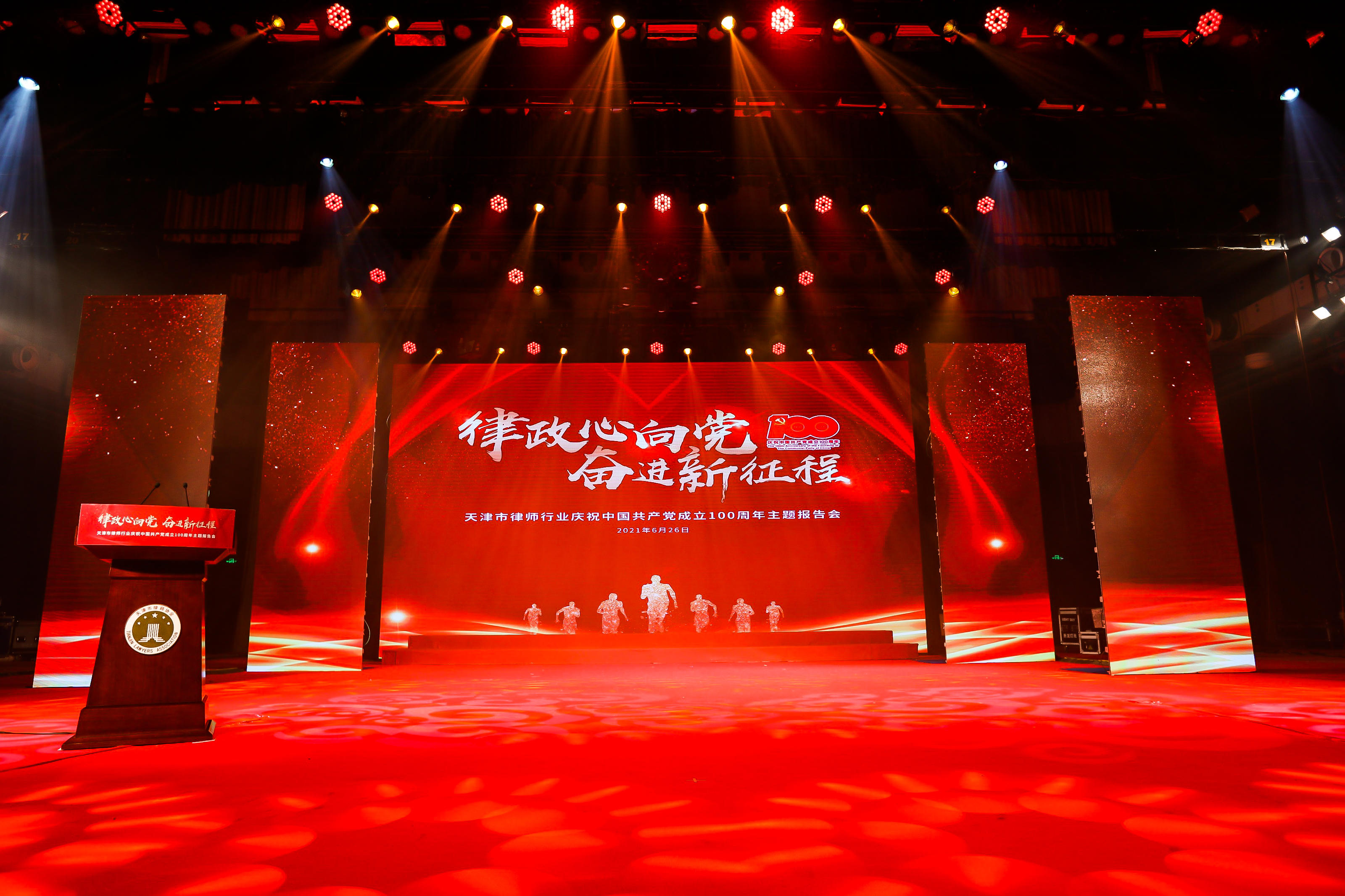为纪念中国共产党成立100周年,讴歌党的光辉历程,天津市律师行业6月26日以“律政心向党 奋进新征程”为主题,举办了庆祝中国共产党成立100周年主题报告会,现场灯光璀璨,热闹非凡。