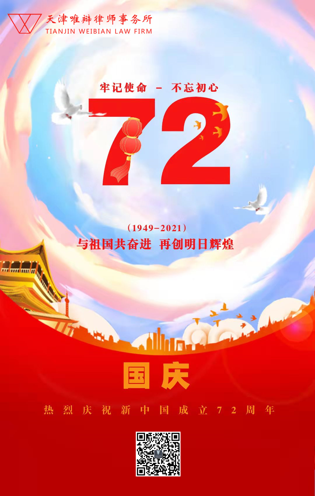 有一种安全感,叫做“我来自中国”;有一种自豪感,叫做“我是中国人”;有句话叫做“我爱你中国”!迎盛世华诞,天津唯辩律师事务所祝您节日快乐,祝祖国繁荣昌盛!